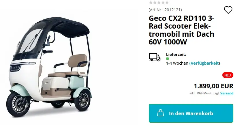 Screenshot und weitere Infos unter: https://www.geco-automobile.de/Geco-CX2-RD110-3-Rad-Scooter-Elektromobil.html